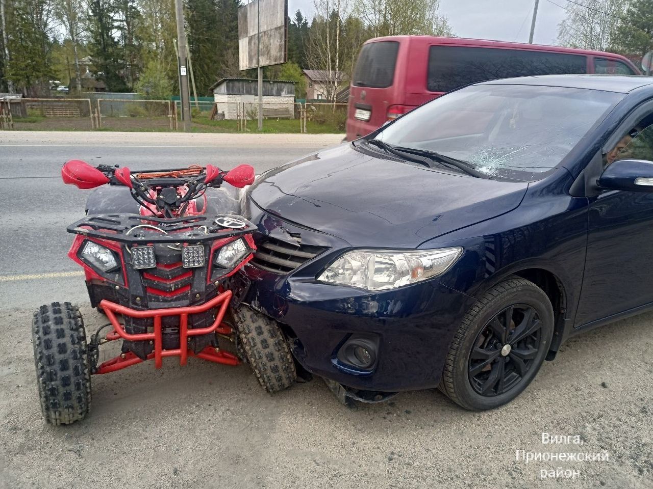 Дорожная авария произошла в минувшие сутки, 22 мая, приблизительно в 17.40 на участке федеральной автодороги в деревне Вилга в Прионежском районе. Там на неравнозначном перекрестке столкнулись квадроцикл и иномарка.
