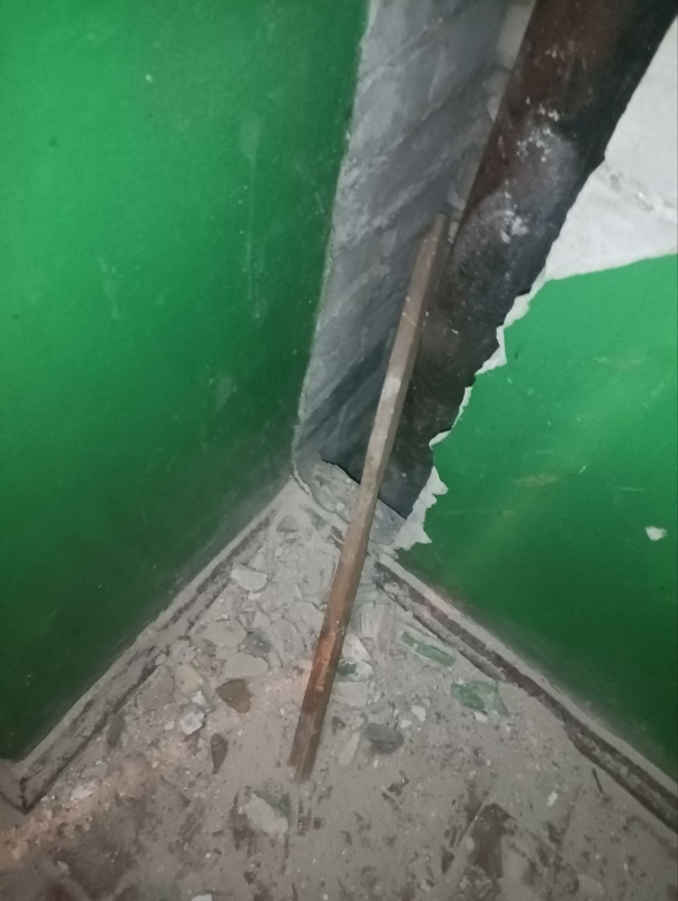 Жильцы общежития на Октябрьском проспекте, 63 «А» пожаловались на то, что в подъезде неизвестные люди разбирают стену и вытаскивают кирпичи. Это происходит также и ночью. Фотографии опубликовали в паблике .