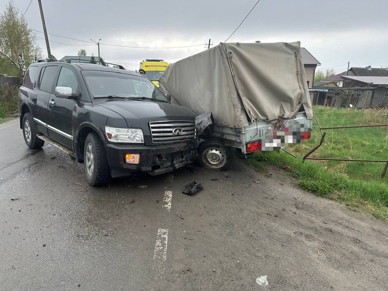 По предварительной информации, 46-летний водитель автомобиля Infiniti QX ехал из Ялгубы в Петрозаводск и совершил небезопасный маневр, в результате чего выехал на полосу встречного движения. Там его автомобиль столкнулся с автомобилем ВАЗ с прицепом.