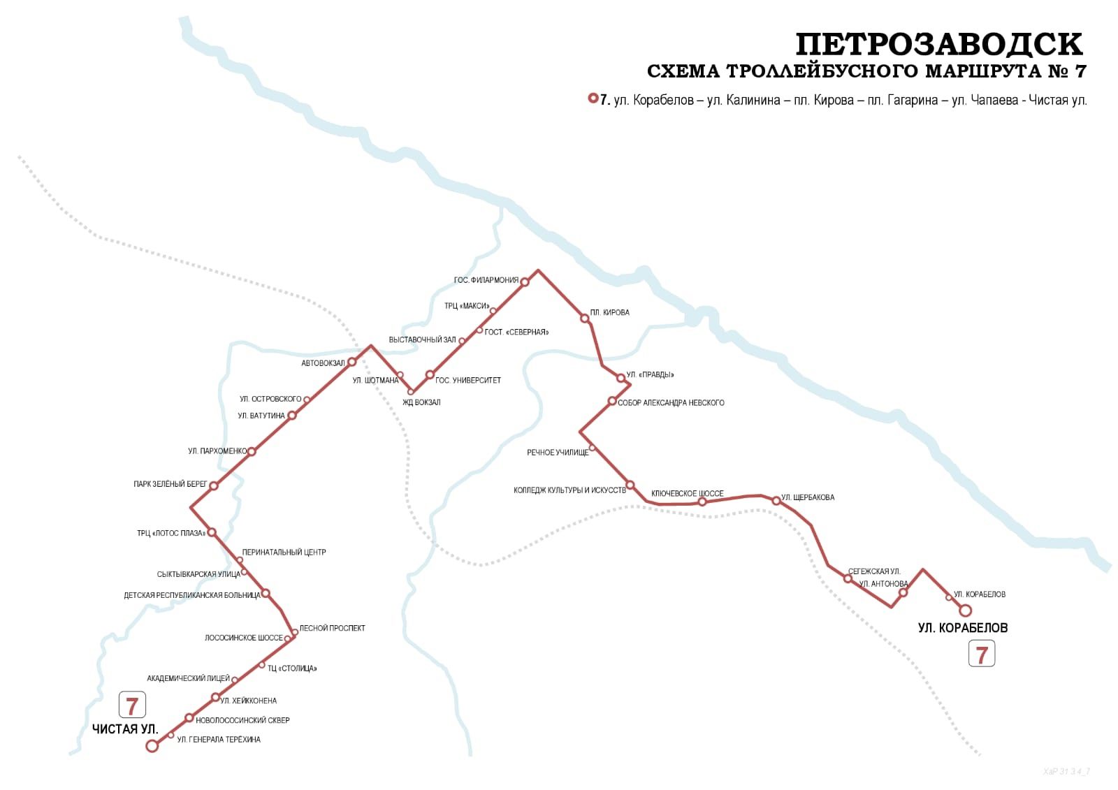«Новый маршрут соединит сразу семь районов: Ключевую, Каменный Бор, Голиковку, Зареку, Центр, Перевалку и Древлянку. Троллейбусы будут следовать от улицы Корабелов через Ключевское шоссе и улицу Калинина, затем — на площадь Кирова, через железнодорожный вокзал, улицу Чапаева до конечной станции на Чистой улице. Благодаря запуску нового маршрута мы увеличим количество троллейбусов на линии. Кроме того, «семёрка» будет ходить по тактовому расписанию с маршрутом №1. Это значит, что на самом загруженном участке от Древлянки и Перевалки до Центра и Зареки троллейбусы будут ходить чаще, чем раньше «, — заявила Инна Колыхматова.