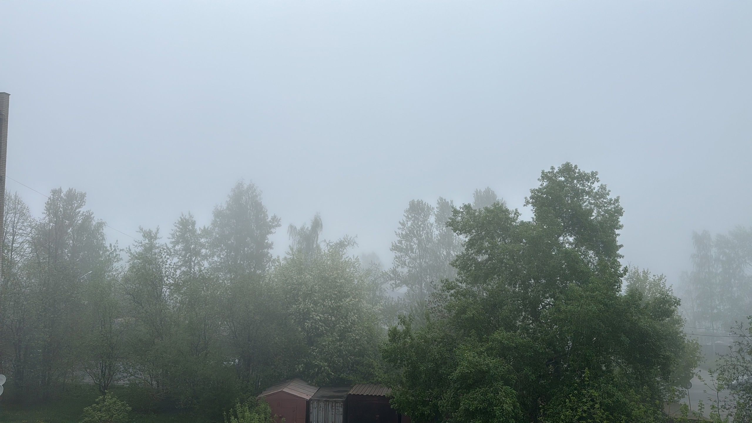 Плотный туман опустился на карельскую столицу. Он окутал дома и деревья. Горожане запечатлели из окон домов Онежское озеро. Противоположного берега совсем не видно.