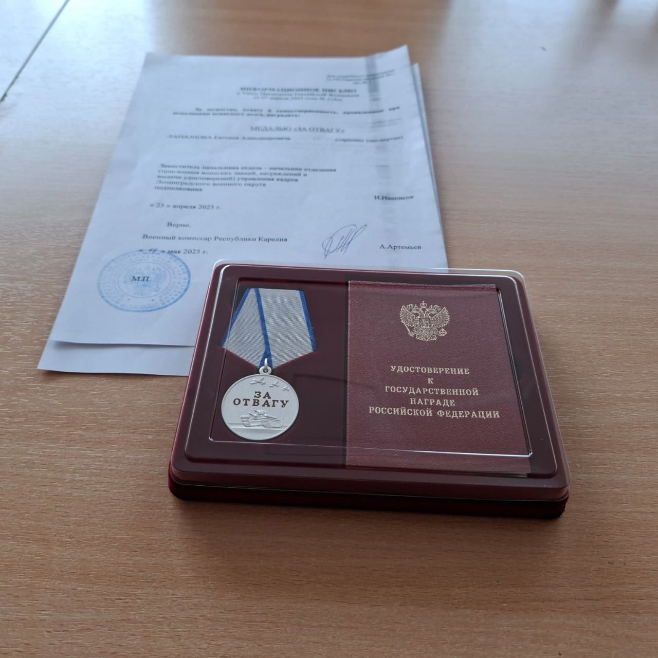 Глава Сегежского муниципального округа Рашид Бескембиров сообщил на своей странице в соцсети. Он вместе с военным комиссаром Сегежи и Сегежского района Александром Гришиным и заместителем по социально-экономическим вопросам Светланой Махмутовой вручили медаль «За Отвагу» дочери погибшего участника СВО Евгения Ларионова.