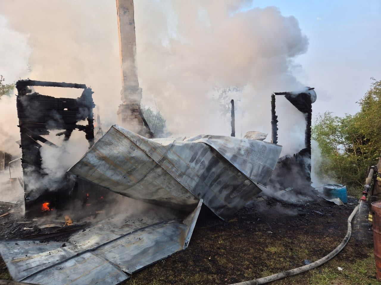 На место происшествия оперативно выехали пожарные. Однако по прибытию дом уже полностью уничтожил огонь. Сгорела и стоящая рядом хозпростройка. Причины пожара устанавливаются.