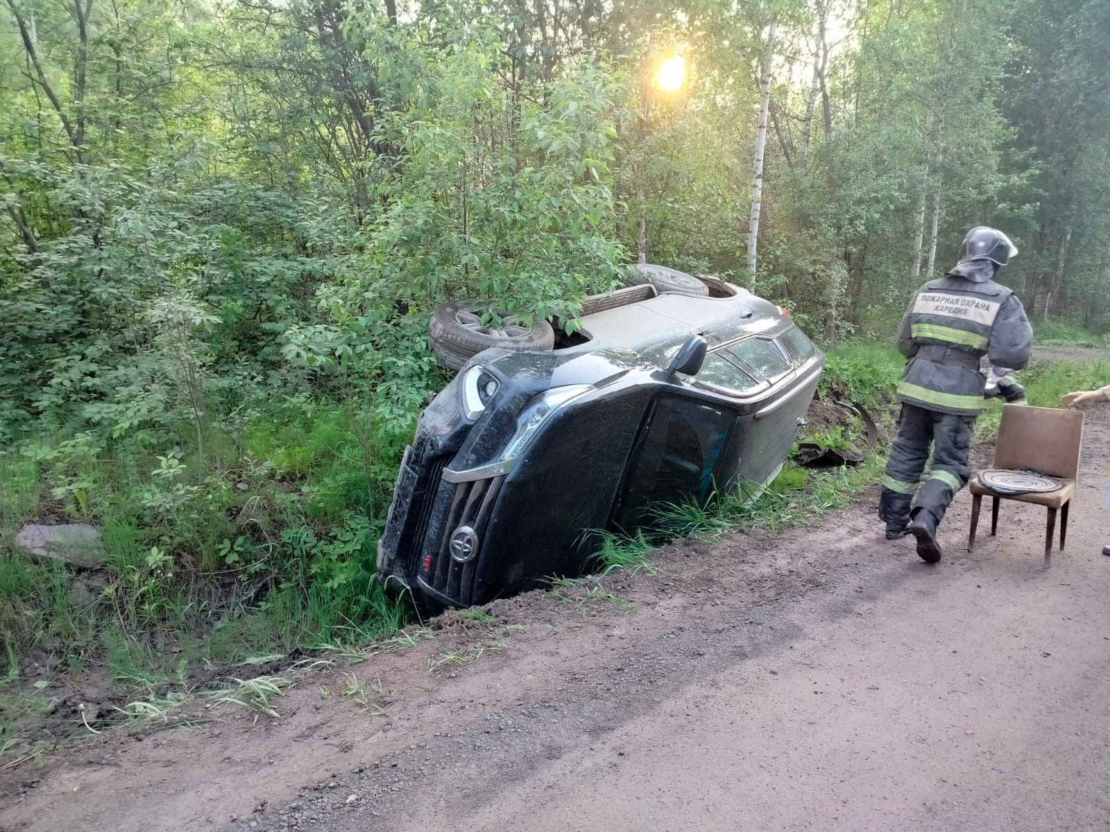 ДТП произошло в минувшую среду, 11 июня, в 20.00 на ул. Завражного в поселке Чална 1. Там легковой автомобиль Toyota лег набок, съехав с дороги в кювет.