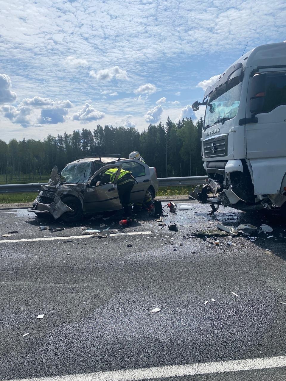 Сегодня в 11.01 около Пряжи произошла жуткая авария. На 361 километре дороги Р-21 «Кола» столкнулись две легковушки и один грузовик. Об этом сообщили в паблике ГКУ РК «ОПС по Пряжинскому району».