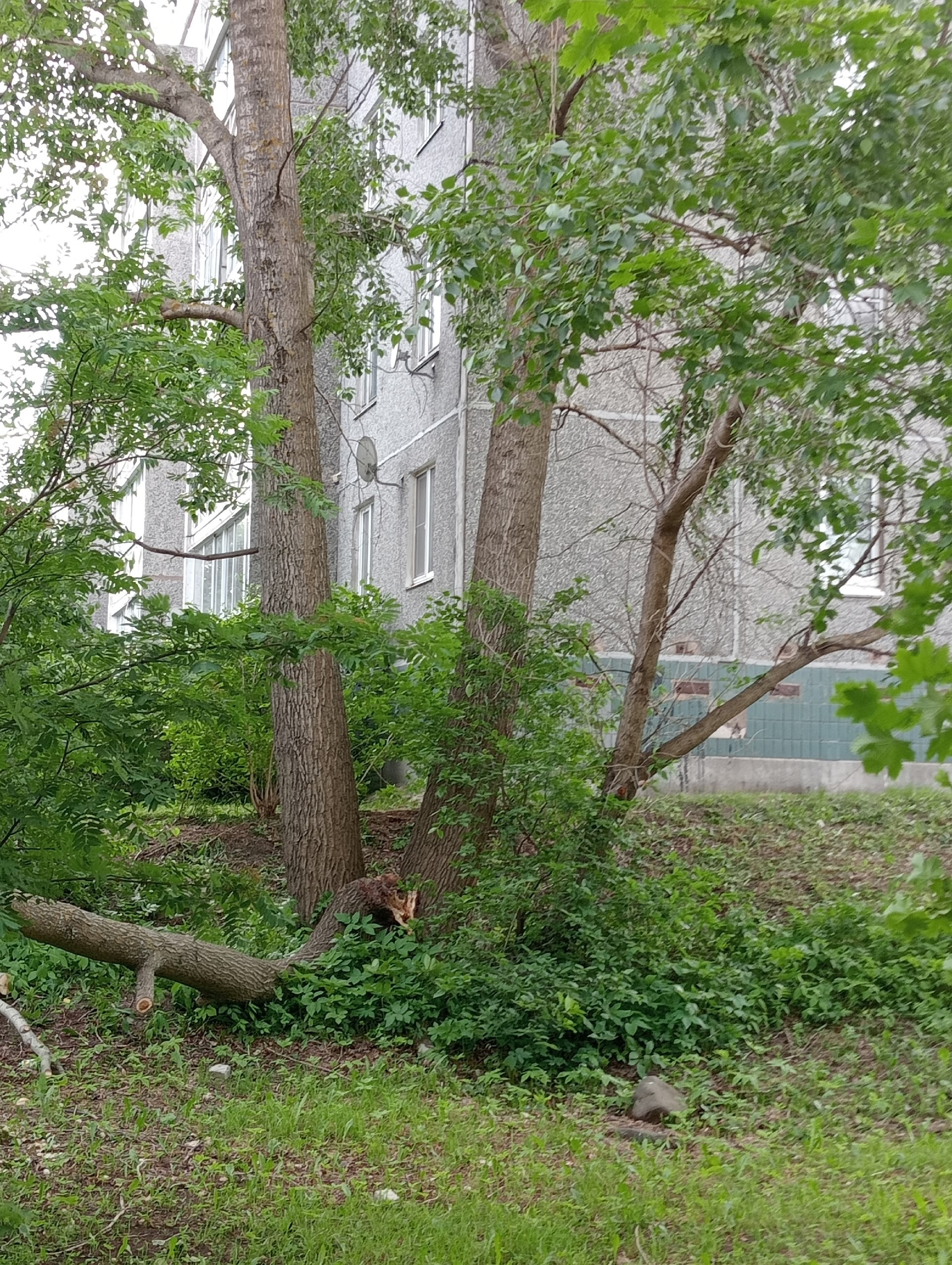 «Подскажите пожалуйста к кому нужно обратиться, чтобы спилить дерево, пока беда не приключилась, потому что никому нет дела, а там дети гуляют. Так же из-за этого дерева в квартиры не поступает солнечный свет, круглые сутки сумрак», — задали вопрос очевидцы в соцсети.