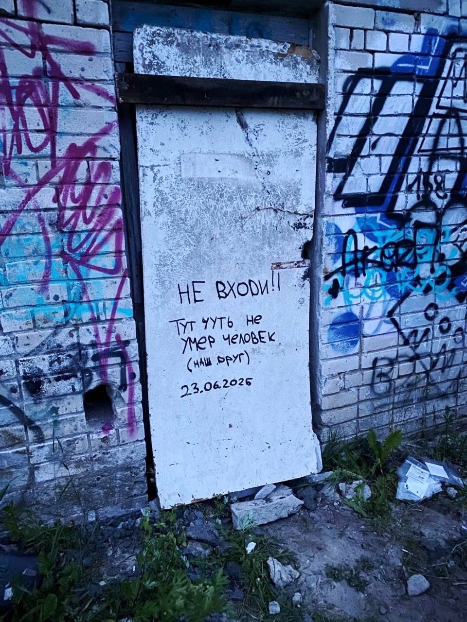 После трагедии его друзья самостоятельно закрыли вход в здание и сделали надпись: «Не входи! Тут чуть не умер человек (наш друг) 23.06.2025».