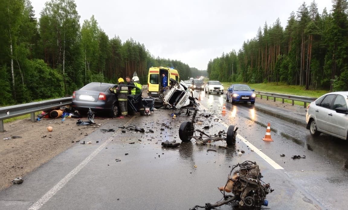 На месте смертельного ДТП на трассе «Кола» образовалась пробка.