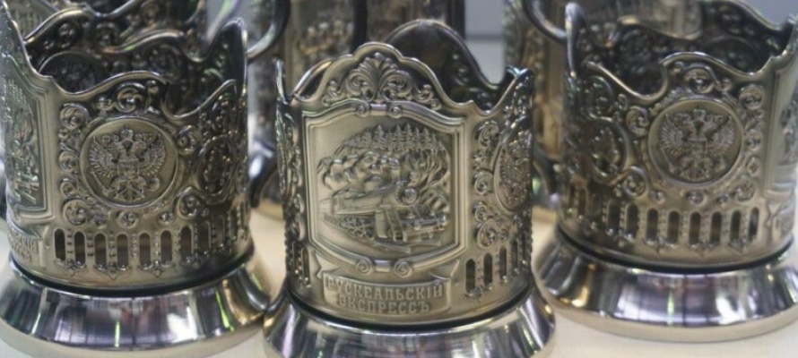 «Пассажиры ретроэкспресса, курсирующего по маршруту Сортавала — Горный парк «Рускеала» – Сортавала пьют чай из стаканов в фирменных подстаканниках. Подстаканники изготовлены из латуни и покрыты никелем. На них изображены мчащийся на всех парах поезд, его название в старорусском стиле, а по бокам — российский герб. Кольчугинский завод «Электрокабель» (Владимирская область) изготовил 300 подстаканников для рускеальского экспресса», — отметили авторы поста.