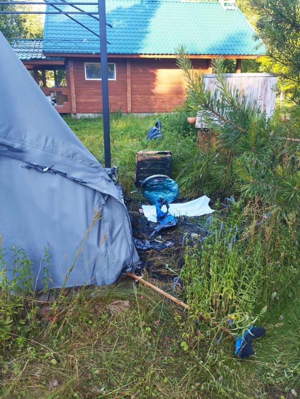 О возгорании в СНТ «Норик» в деревне Половина спасателям сообщили в 18.21. И уже в 18.30 на место происшествия прибыл дежурный караул пожарной части поселка Пряжа.