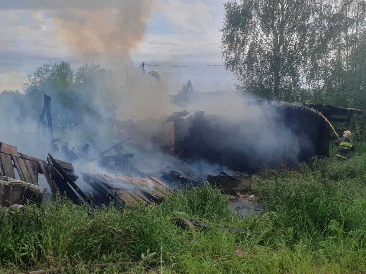 Пожар произошел вечером в понедельник, 7 июля, в совхозе Вичка Медвежьегорского района. Там загорелись хозяйственные постройки — сараи. Огонь создавал угрозу рядом стоящим жилым домам. Пожарных вызвали в 18.25.