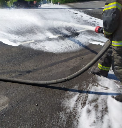 Они осмотрели место происшествия, отключили аккумулятор автомобиля и пролили дорожное покрытие. На месте также работали полиция и скорая помощь.