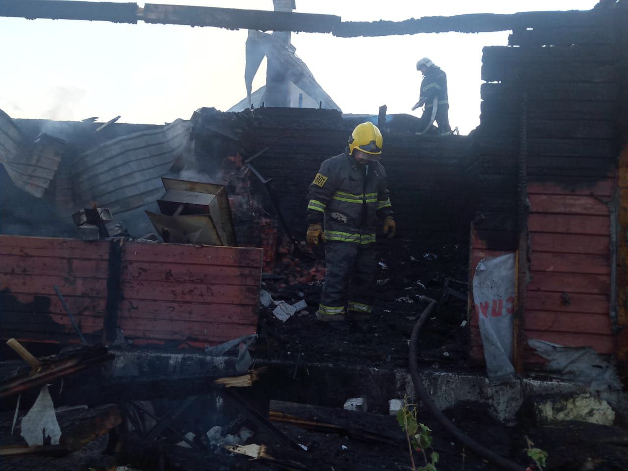 Огонь удалось локализовать к 18:35, но полностью потушили только к 19:35. Сейчас пожарные разбирают завалы. К сожалению, при тушении нашли обгоревшее тело. Следователи изучат место трагедии.