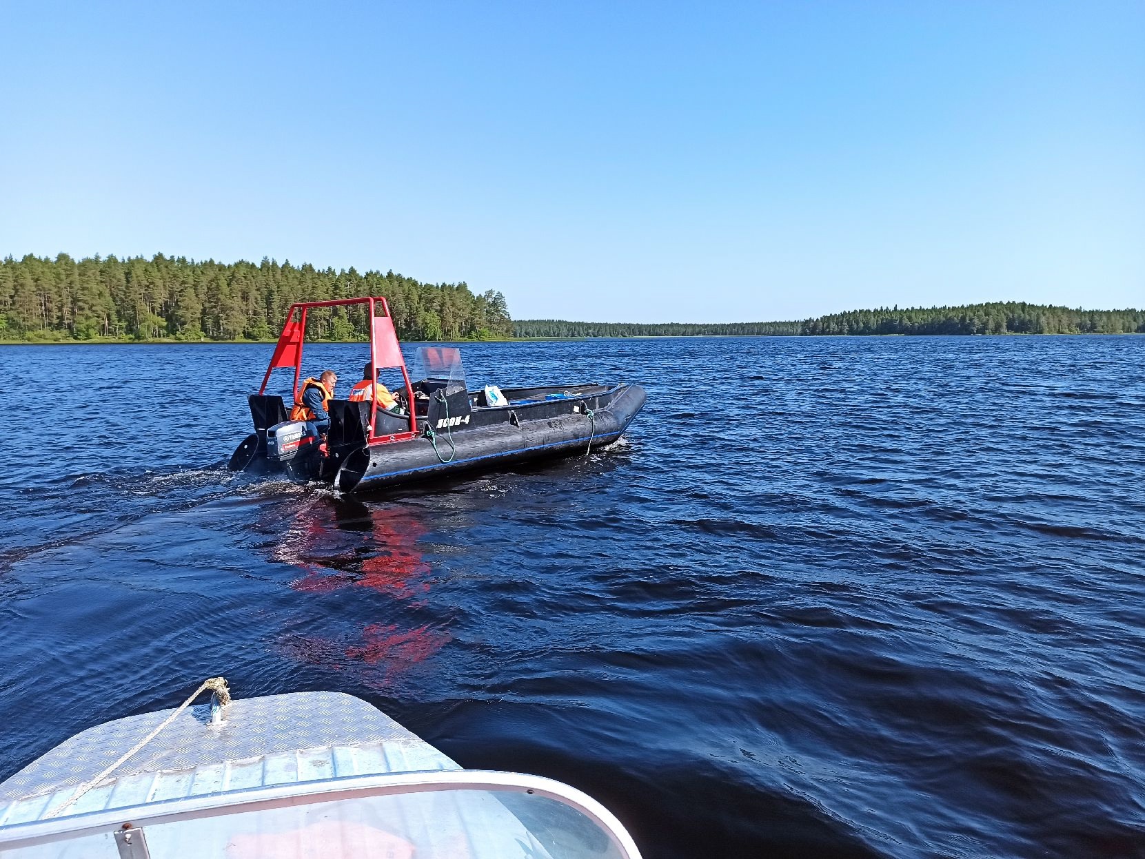 Инспекторы ГИМС Костомукши в выходные дни патрулировали один из водоемов. Так, на озеро Кимасозеро было проверено 8 моторных лодок.