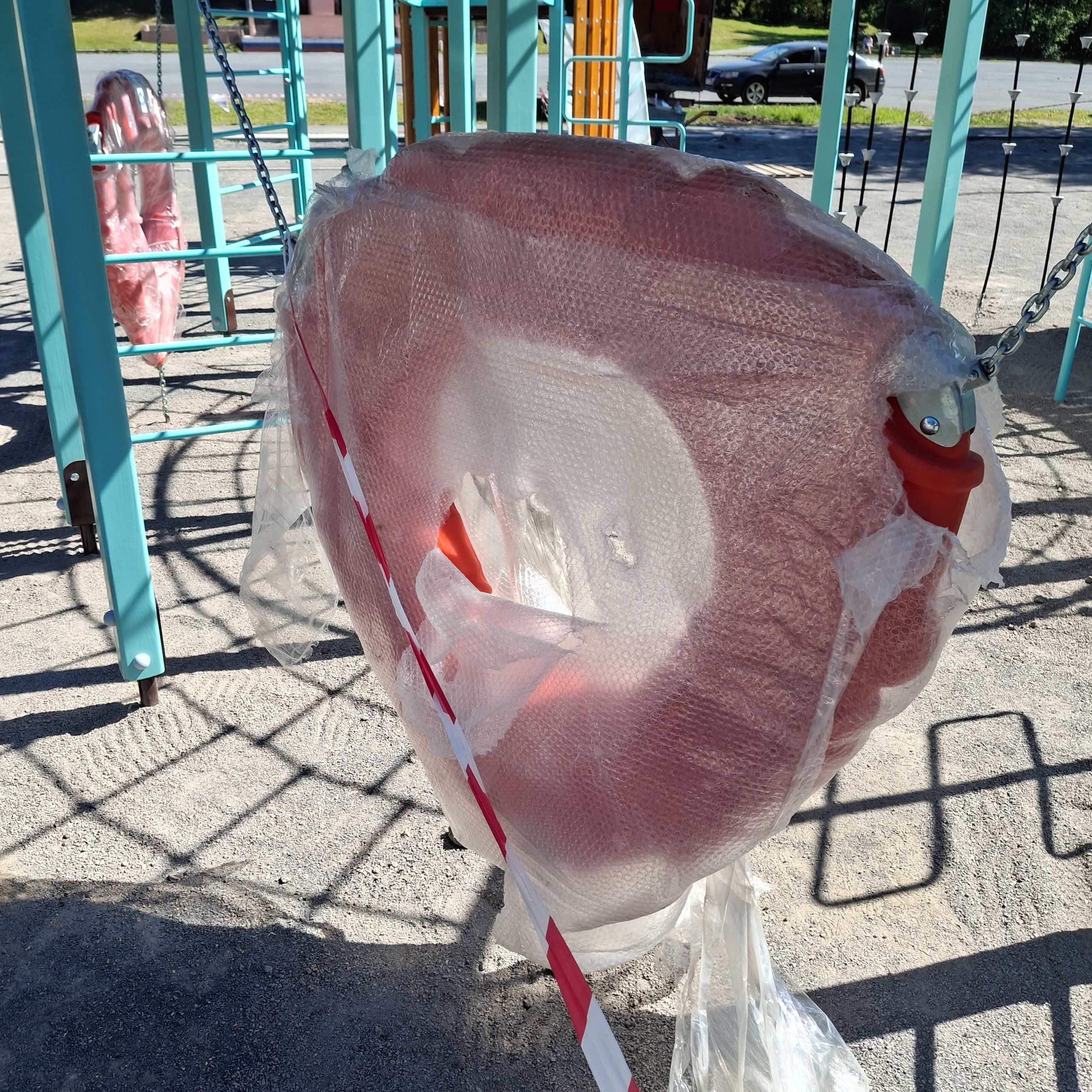 Новую детскую площадку возводят в Кондопоге на площади Ленина. Однако в последнее время сюда приходят злоумышленники и портят новое оборудование, которое еще не успели установить. Об этом сообщили в паблике
