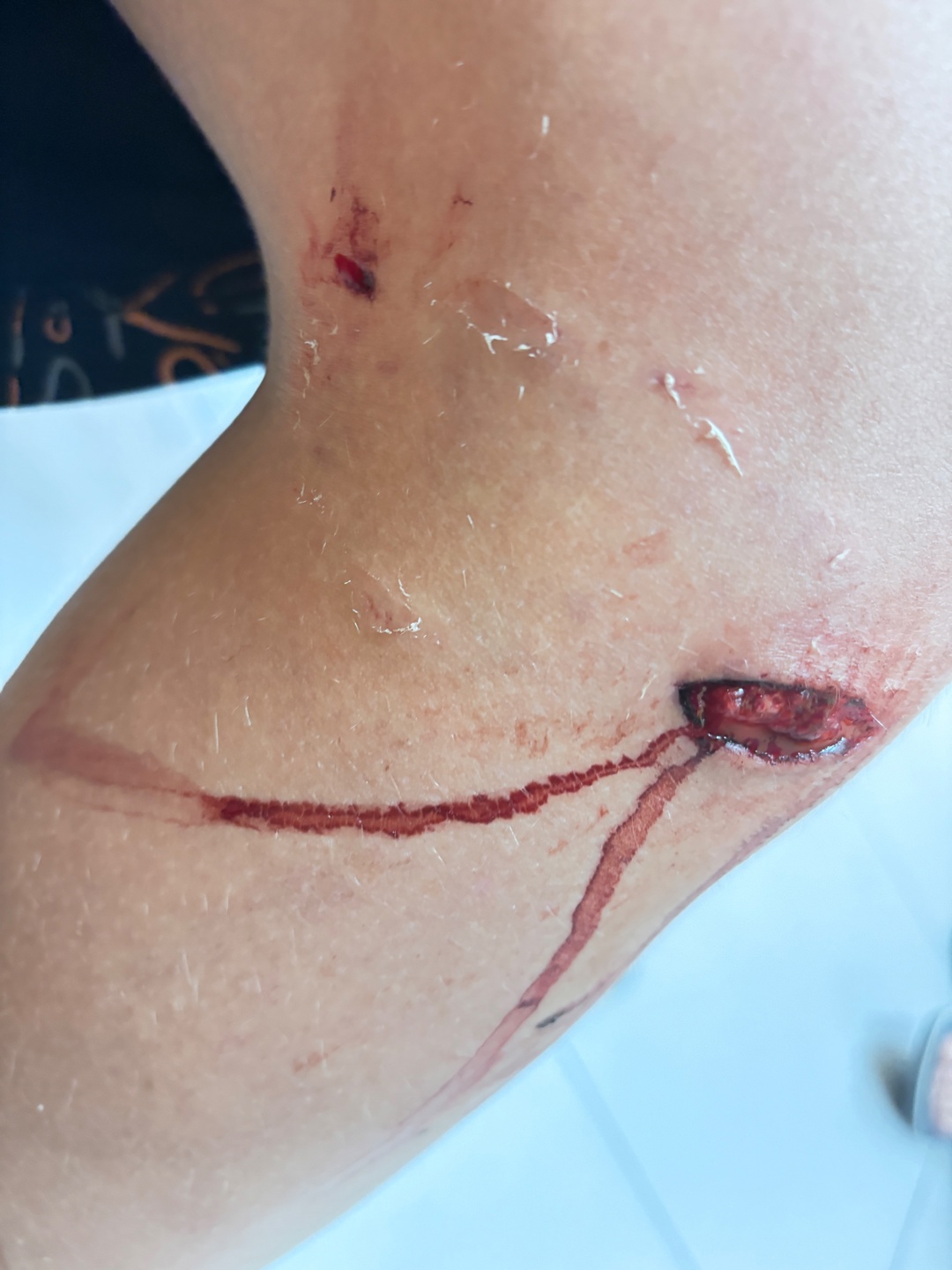 Родители ребенка обратились в соцсети с просьбой помочь найти хозяев собаки. Судя по фото, раны потерпевший получил серьезные. Теперь потребуется лечение.