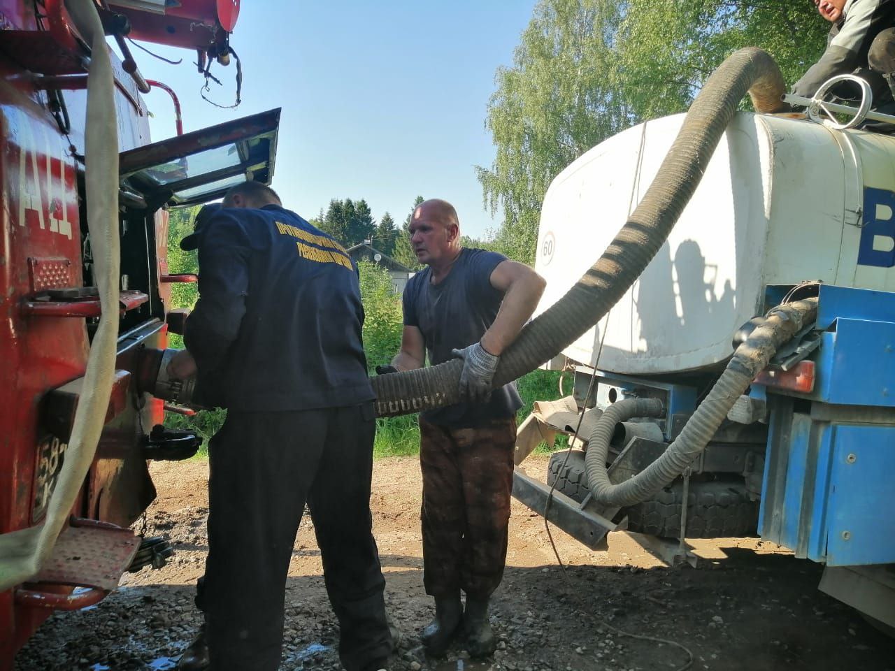 Судя по фото, от дома практически ничего не осталось. Сейчас пожарные проливают и разбирают конструкции, чтобы найти остатки газового баллона. Производится подвоз воды с расстояния четырех километров.