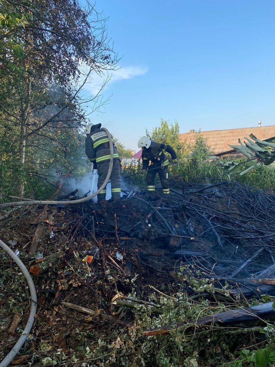 Прибывшие пожарные увидели полыхающий на улице мусор — древесные отходы.