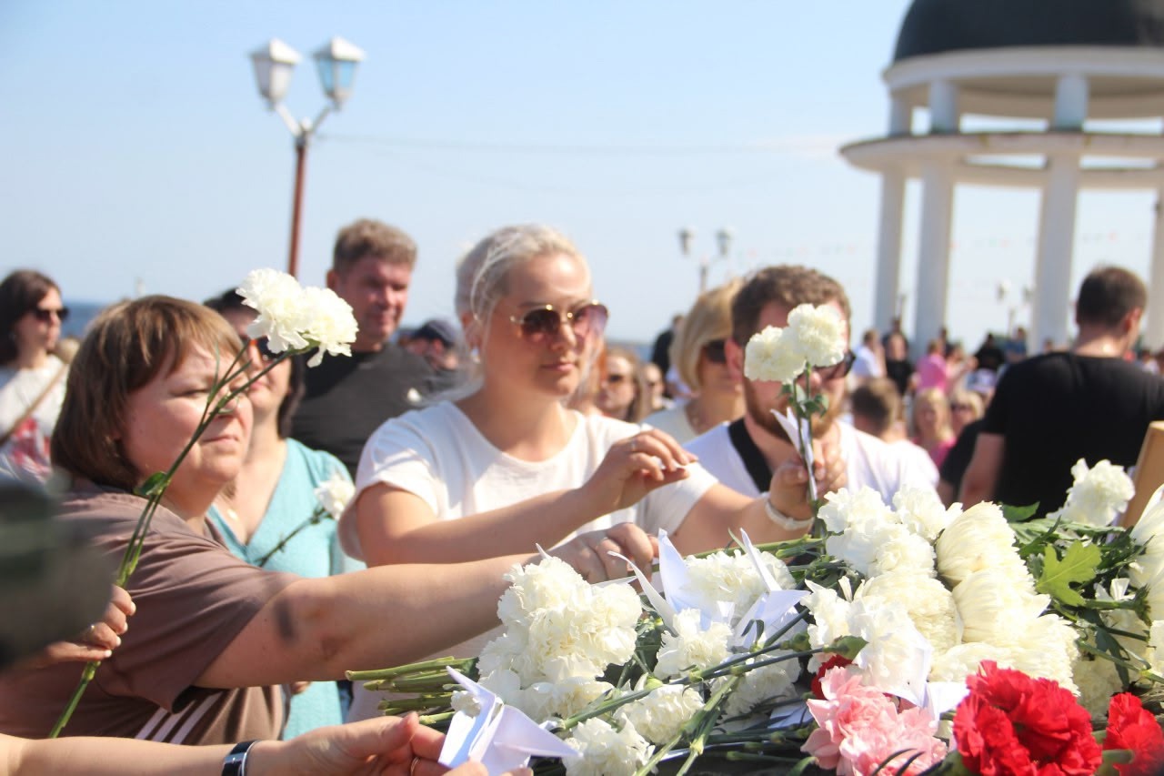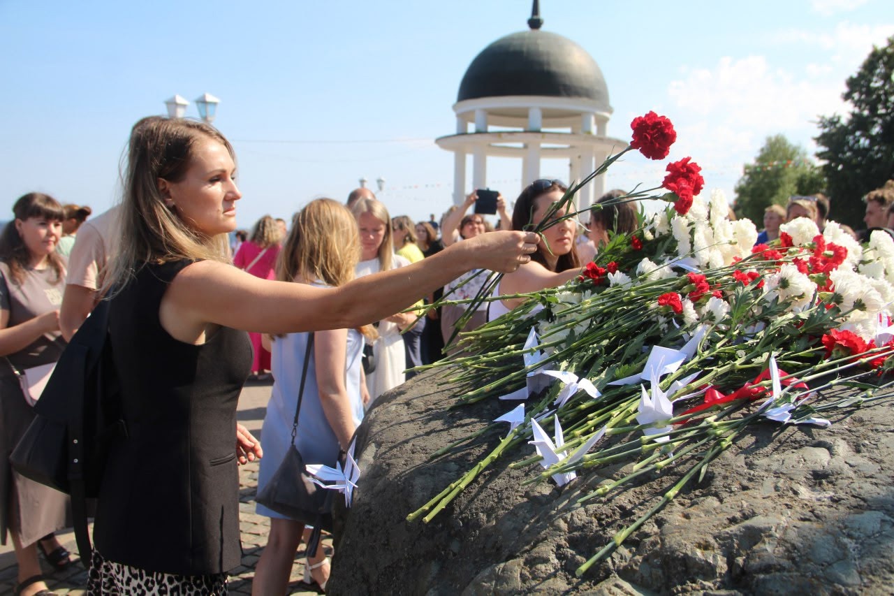Петрозаводск почтил память детей – жертв военных действий в Донбассе. Траурная церемония прошла у Камня Скорби, где жители города возложили цветы и бумажных журавликов.