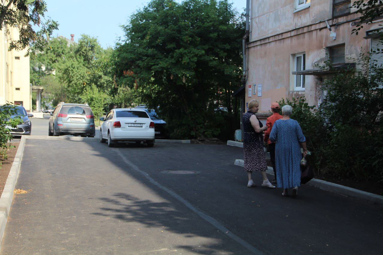 Ремонт во дворе на улице Максима Горького, 24 прошёл в рамках федеральной программы «Формирование комфортной городской среды». На придомовой территории положили асфальт, обновили бордюры, обустроили дренаж, а возле каждого подъезда