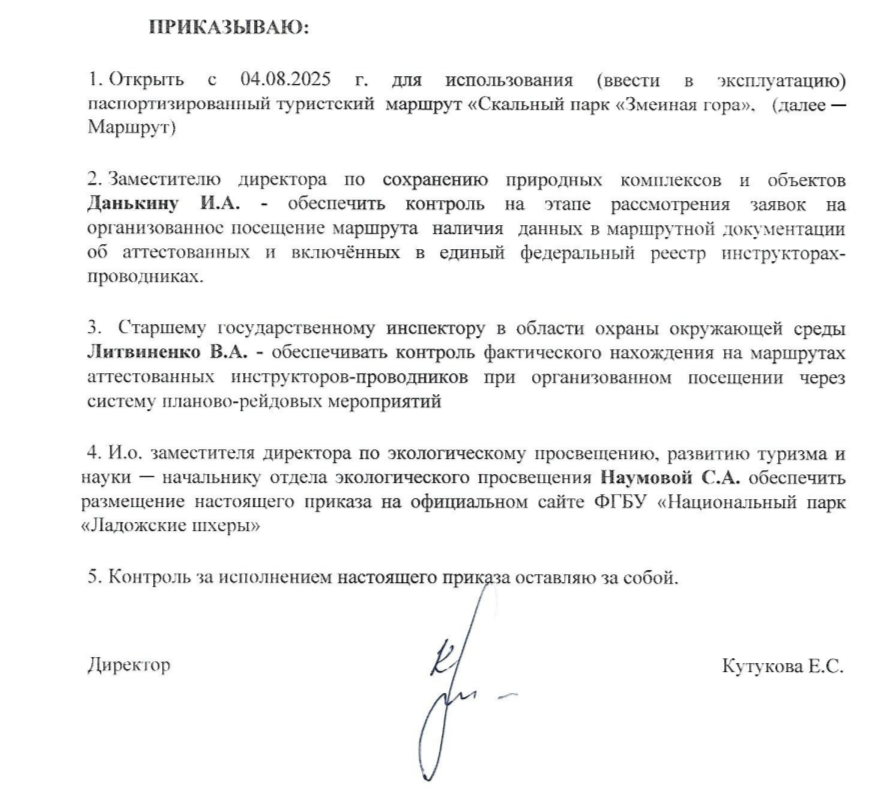 Маршрут «Скальный парк «Змеиная гора» с 4 августа сделали доступным для любителей скалолазания. Об этом сообщили в паблике Национальный со ссылкой на официальный приказ, подписанный директором Еленой Кутуковой.