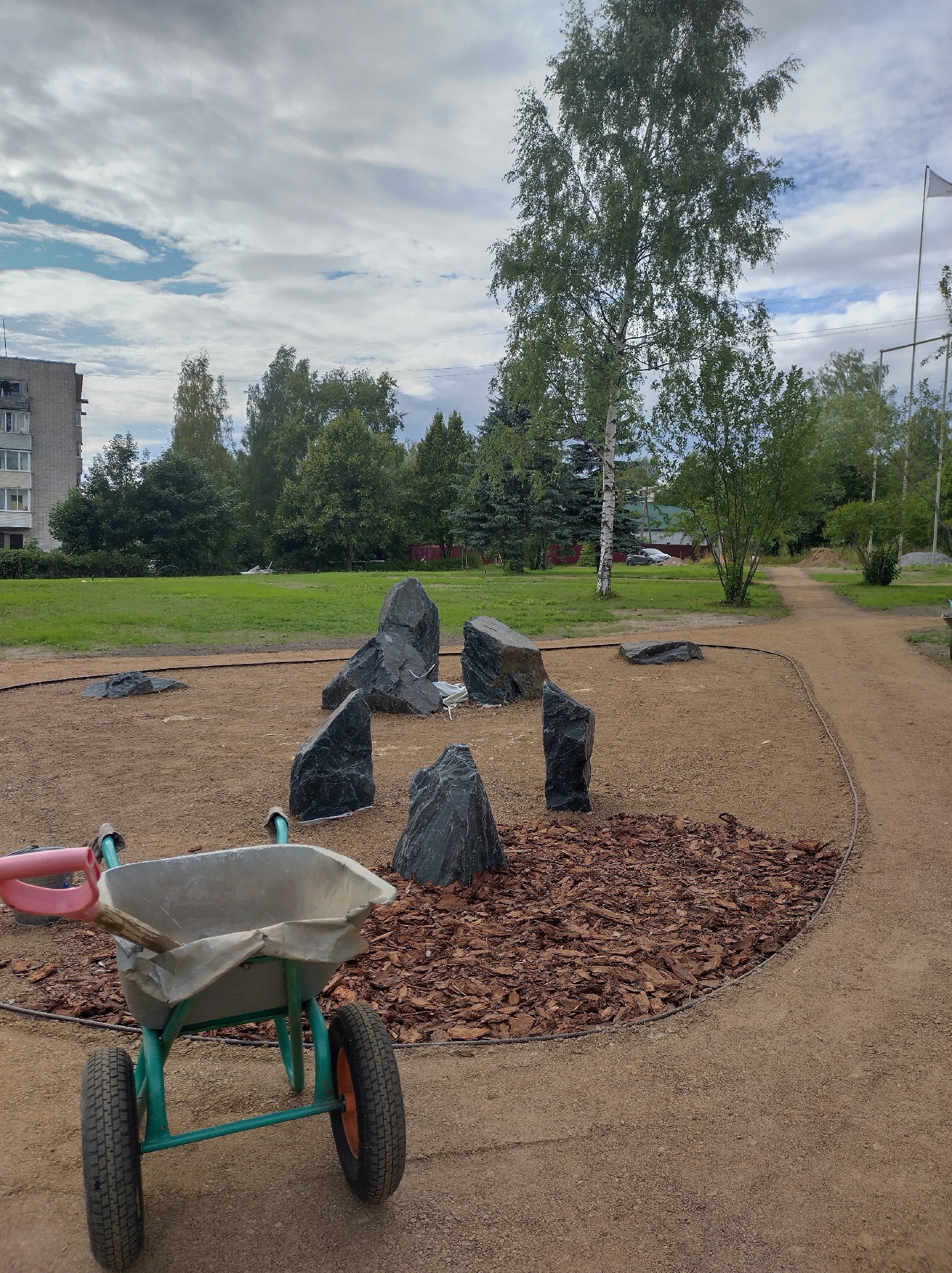 Территория города становится уютнее: подрезаны деревья, обустраиваются дорожки, появляются клумбы и каменные арт-объекты. Работы ведутся силами активистов и компании «Ладенсо».