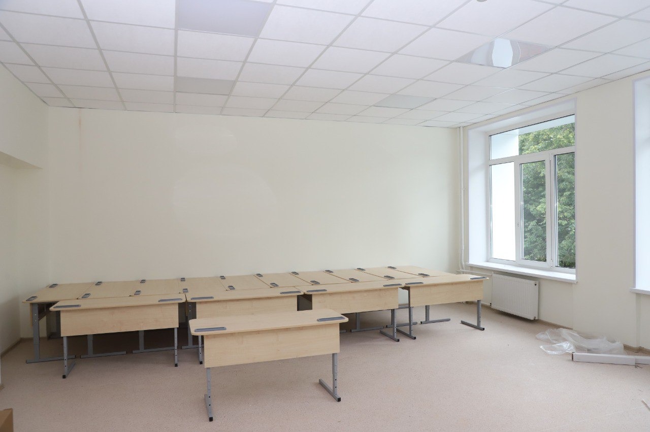 Сейчас ремонт доделывают на втором и третьем этажах. Рабочие монтируют потолочные панели и ряд других финальных работ. Идет обустройство первого этажа. Подрядчик заверил, что к 1 сентября школа откроет свои двери для учеников.