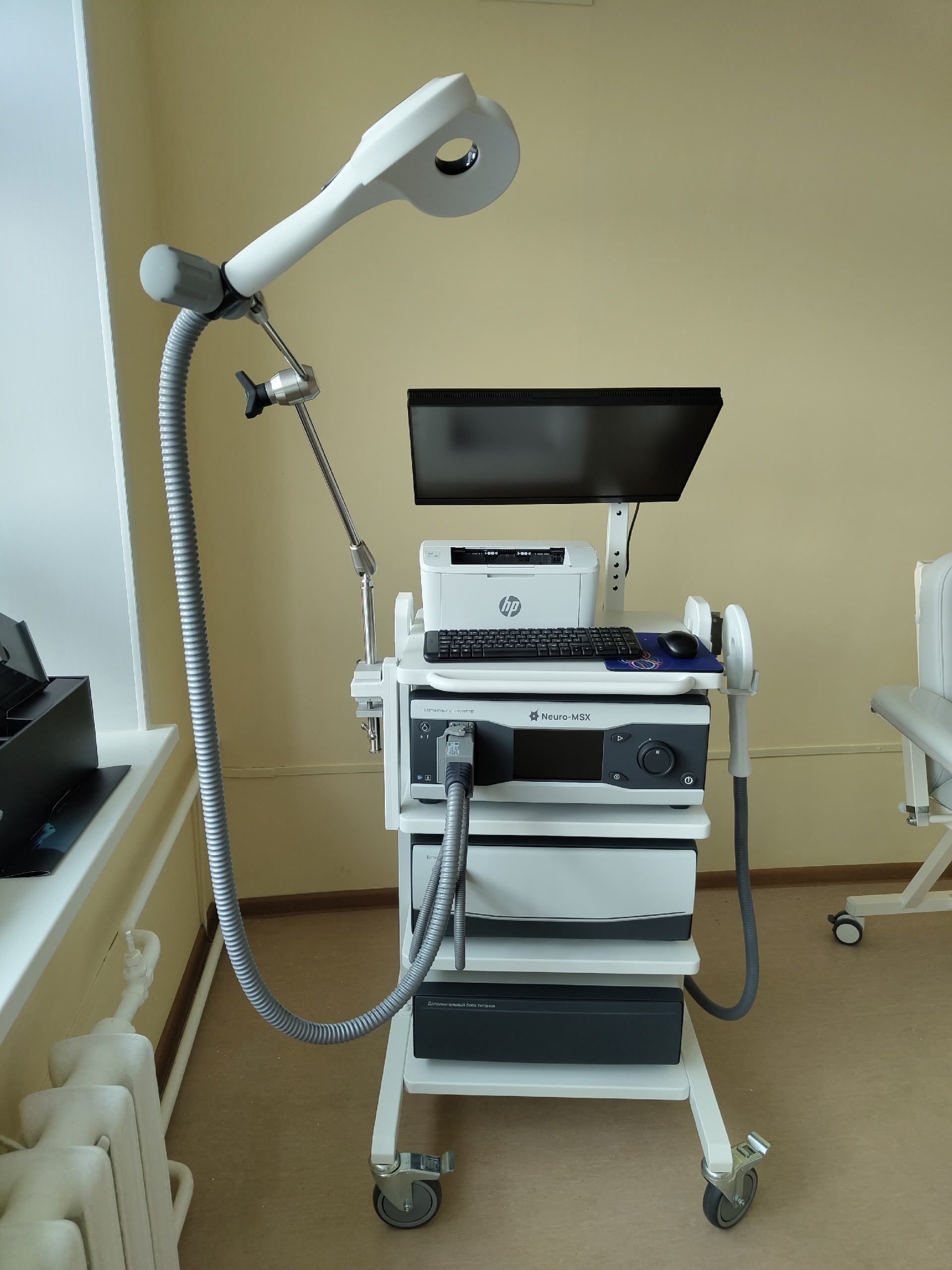 В больницу имени Баранова поступил аппарат для транскраниальной магнитной стимуляции. Он применяется для лечения неврологических заболеваний и диагностики нарушений работы мозга.