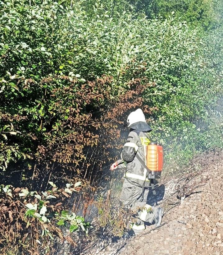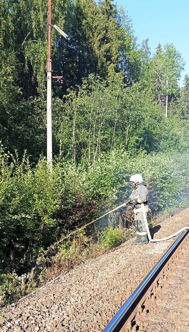 Вчера, 12 августа, в 3 км от Суоярви, недалеко от улицы Петрозаводское шоссе пожарные потушили горящую траву вдоль железной дороги.