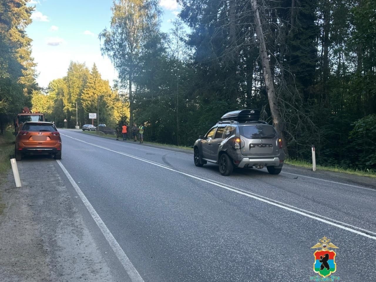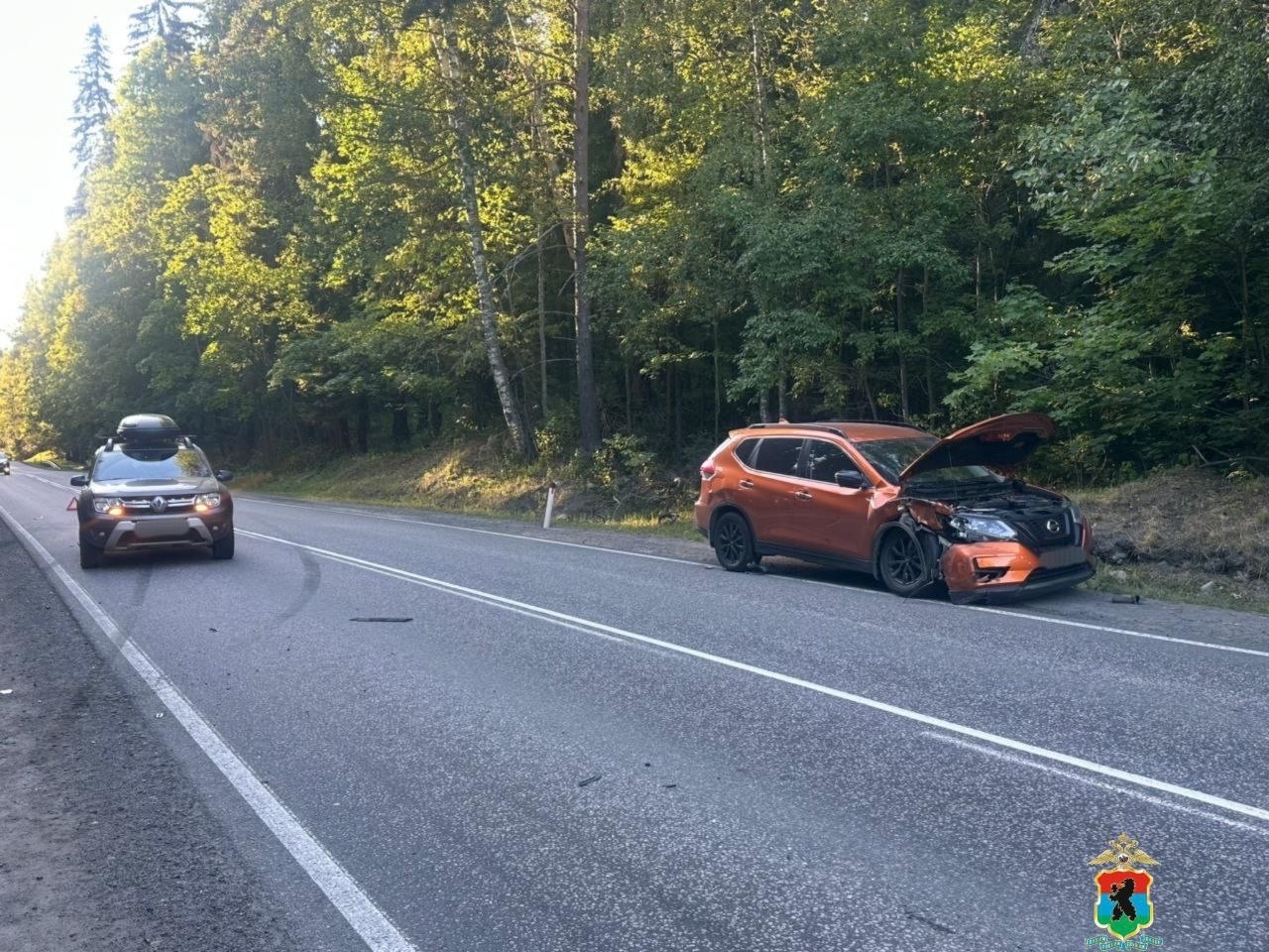 Как рассказали в телеграм-канале полиции Карелии, машины ехали по трассе в попутном направлении. Впереди — автомобили Renault Duster и Renault Arkana. Водитель автомобиля Chevrolet Lacetti, который двигался по трассе позади всех, пошел на обгон в неустановленном для этого месте и выехал на полосу для встречного движения. В это же время водитель автомобиля Nissan X-Trail, который ехал перед ним, тоже пошел на обгон. В результате машины столкнулись.