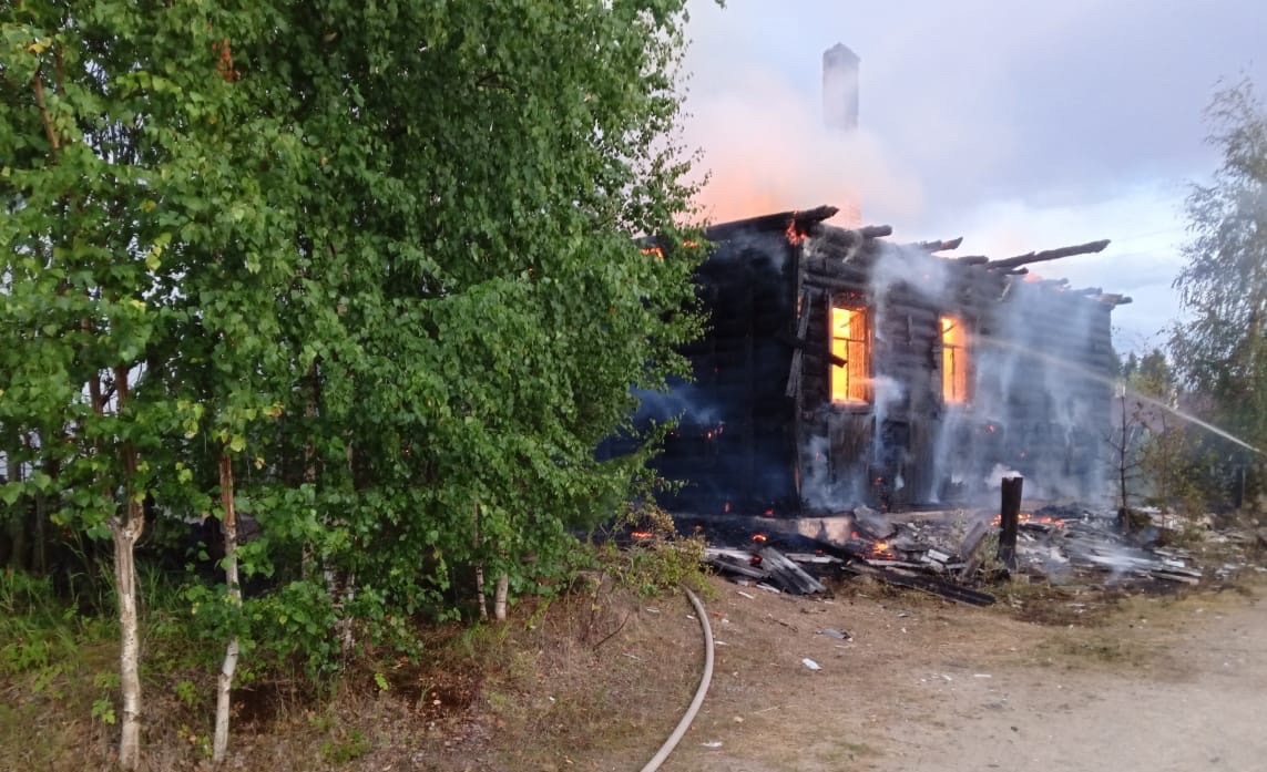 Вчера вечером два отряда пожарных потушили горящий нежилой дом в поселке Верхнеолонецкий.