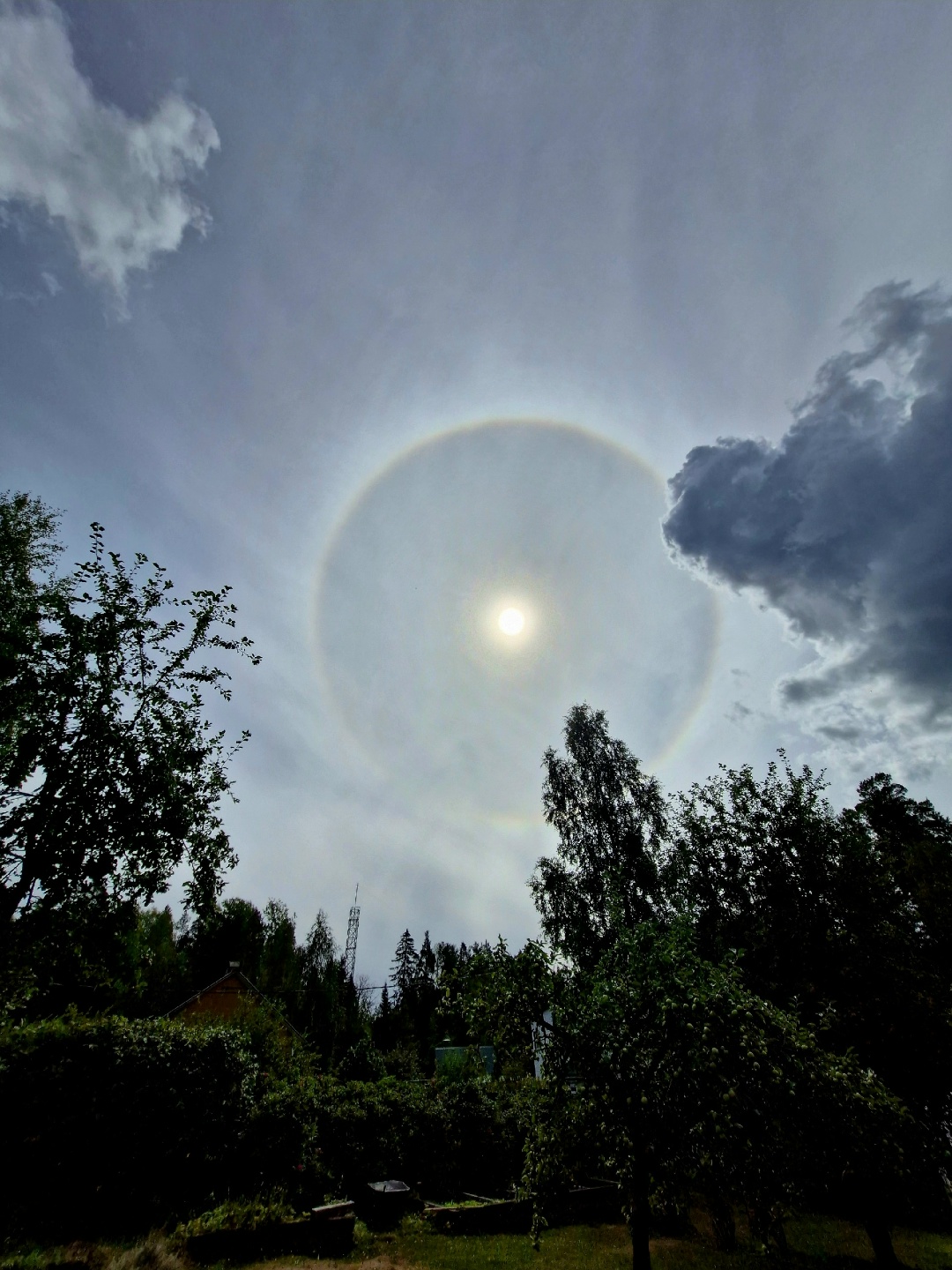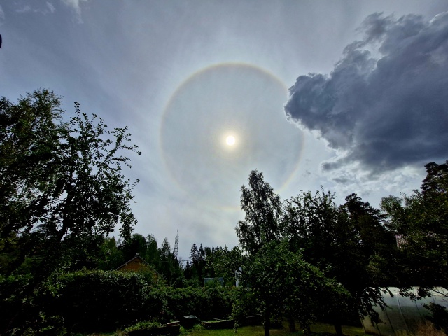 Солнечное гало образуется из-за преломления света в ледяных кристаллах в верхних слоях атмосферы. Это оптическое явление, которое представляет собой светящееся кольцо вокруг Солнца, но бывают и другие формы — дуги, столбы, кресты, отмечают ученые.