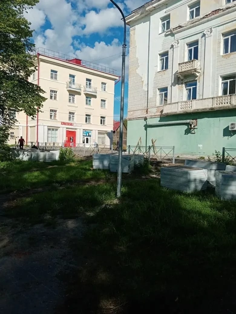 В Сегеже идет благоустройство сквера у гостиницы «Выг». Администрация округа обращается к жителям с просьбой ходить только по пешеходным дорожкам.