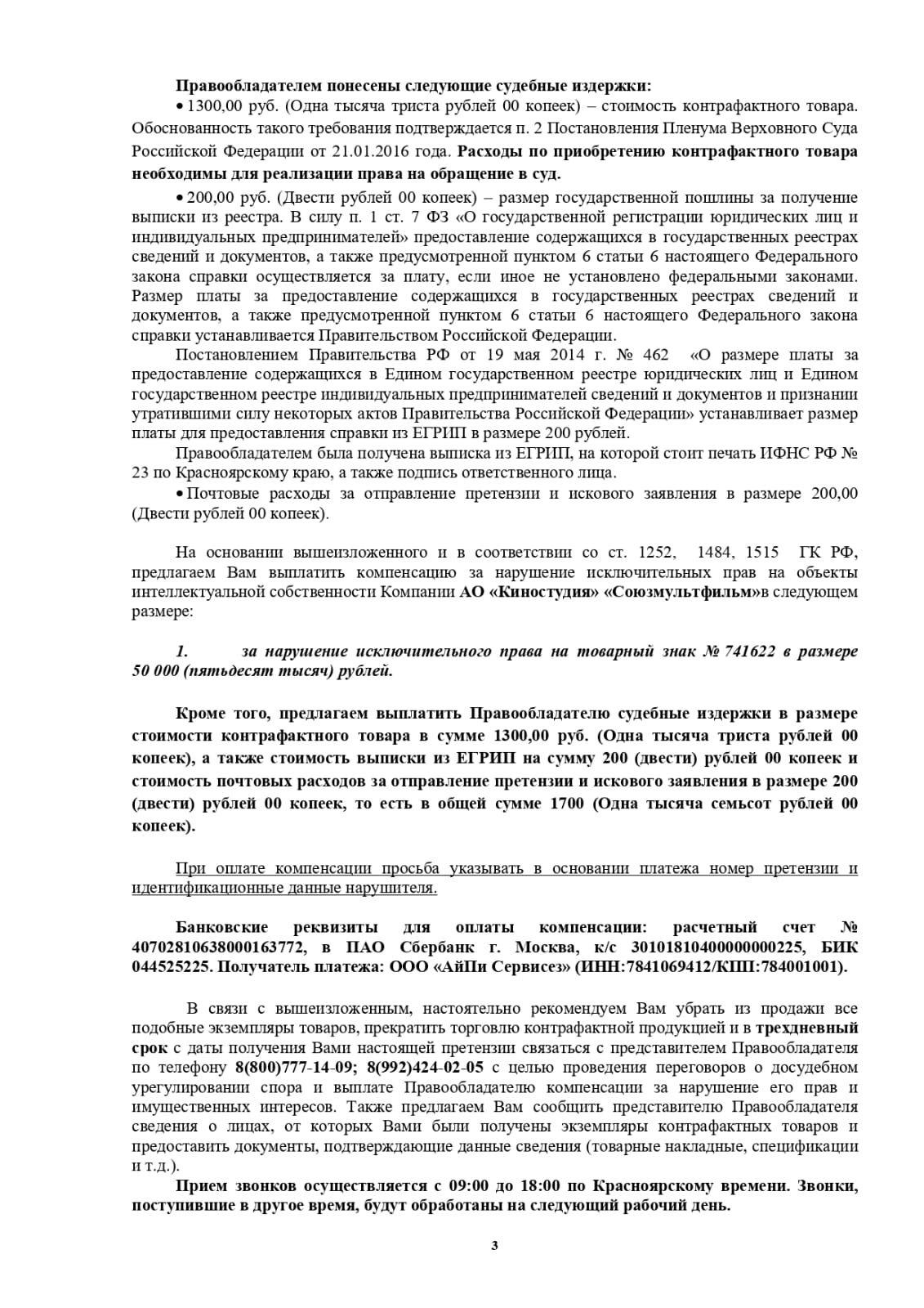 Киностудия «Союзмультфильм» требует за нарушение исключительного права на товарный знак 50 тысяч рублей. Суть претензии заключается в том, что предприниматель из Олонца посягнул на объекты интеллектуальной собственности компании АО «Киностудия» «Союзмультфильм». Коммерсант в своем магазине продавал ключницу с изображением волка, права на изображение которого ему не принадлежат, сообщили в местном паблике.