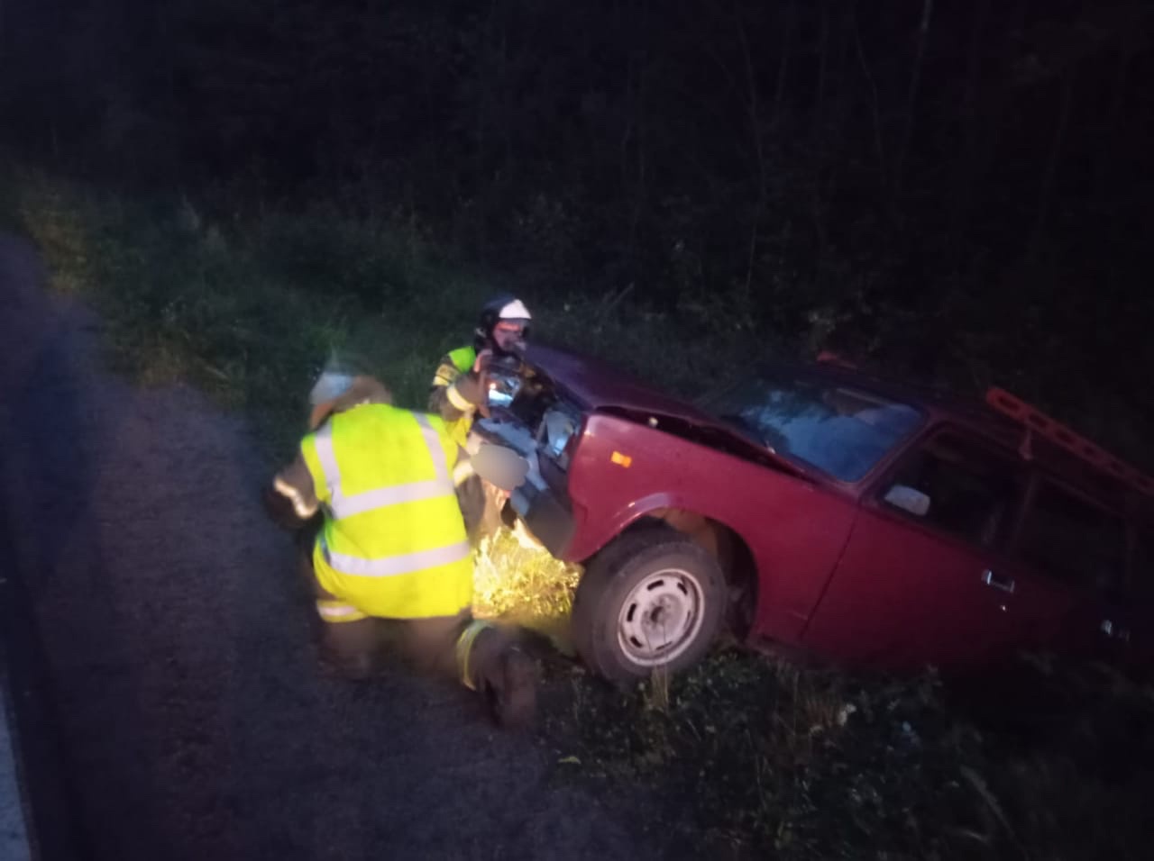 В 21.16 пожарное подразделение было на месте. Два автомобиля находились в кювете.