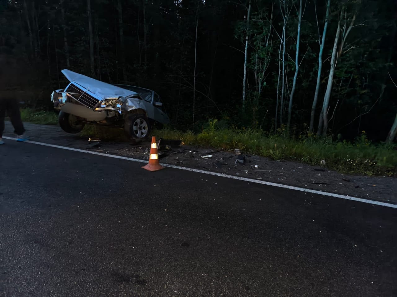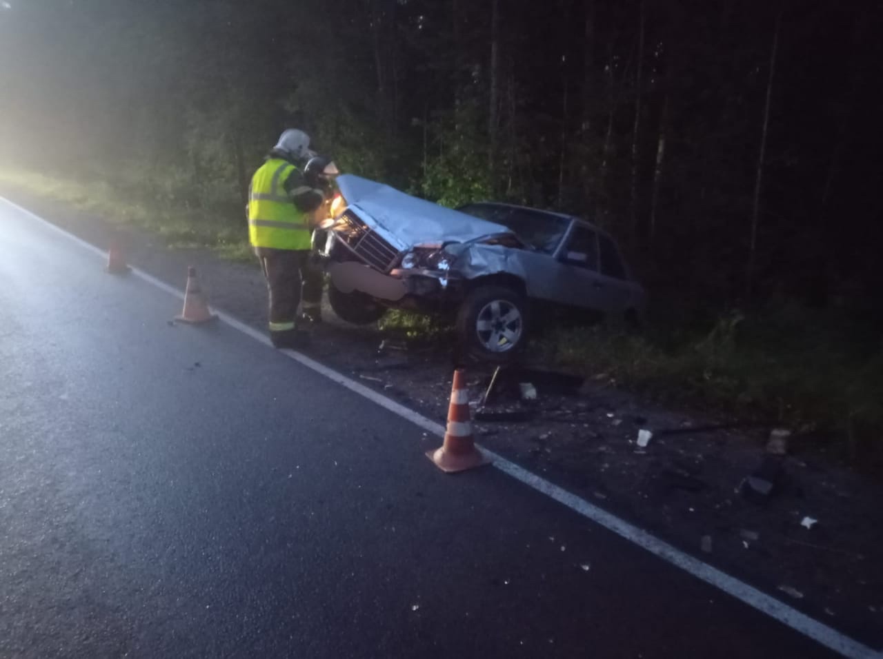 Лобовое столкновение двух автомобилей произошло накануне вечером, 19 августа, на 3 километре Пиньгубского шоссе возле Петрозаводска.