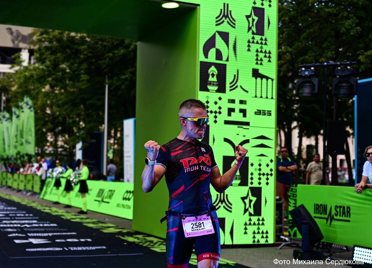 Один из крупнейших триатлонных стартов России прошёл 10 августа. Михаил Сердюков успешно преодолел всю дистанцию длиной 113 километров: 1,93 км вплавь за 34 минуты 23 секунды, 90 км на велосипеде за 2 часа 25 минут со средней скоростью 37,5 км/ч и 21,5 км бегом за 1 час 21 минуту, пишет местный телеграм-канал.