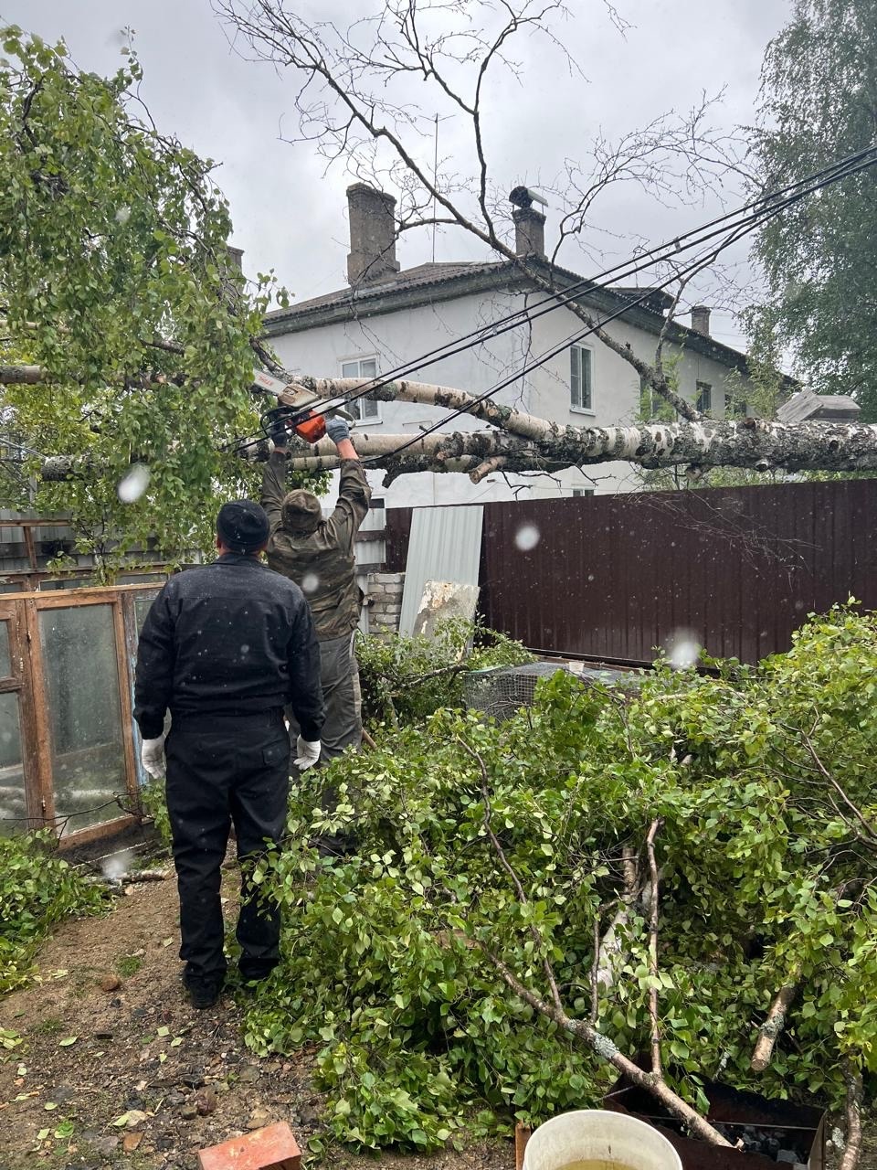 Инцидент произошел днем сегодня, 20 августа, у дома № 15 на ул. Ленина в поселке Сосновец. Там упало дерево на провода и перегородило вход во двор. В 12.25 вызвали спасателей.