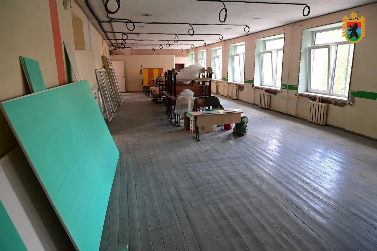 В школе №12 уже восстановили кровлю и фасады. Следующий этап — замена инженерных сетей и отделка помещений. В школе №7 ремонтируют кровлю, фасад и электросети, утепляют здание.