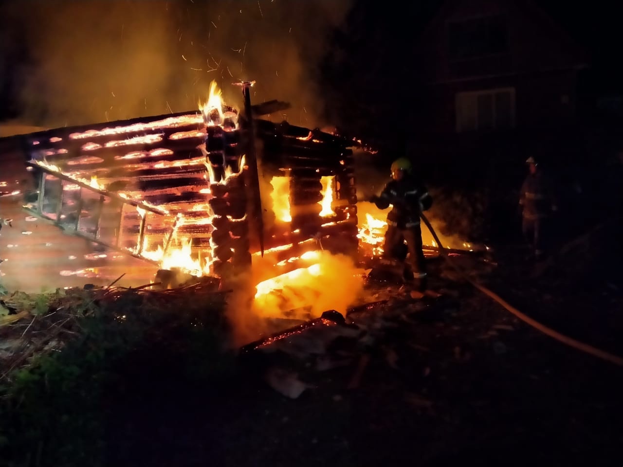 Пожар полностью потушили под утро. Баня сгорела, но соседние постройки удалось отстоять.