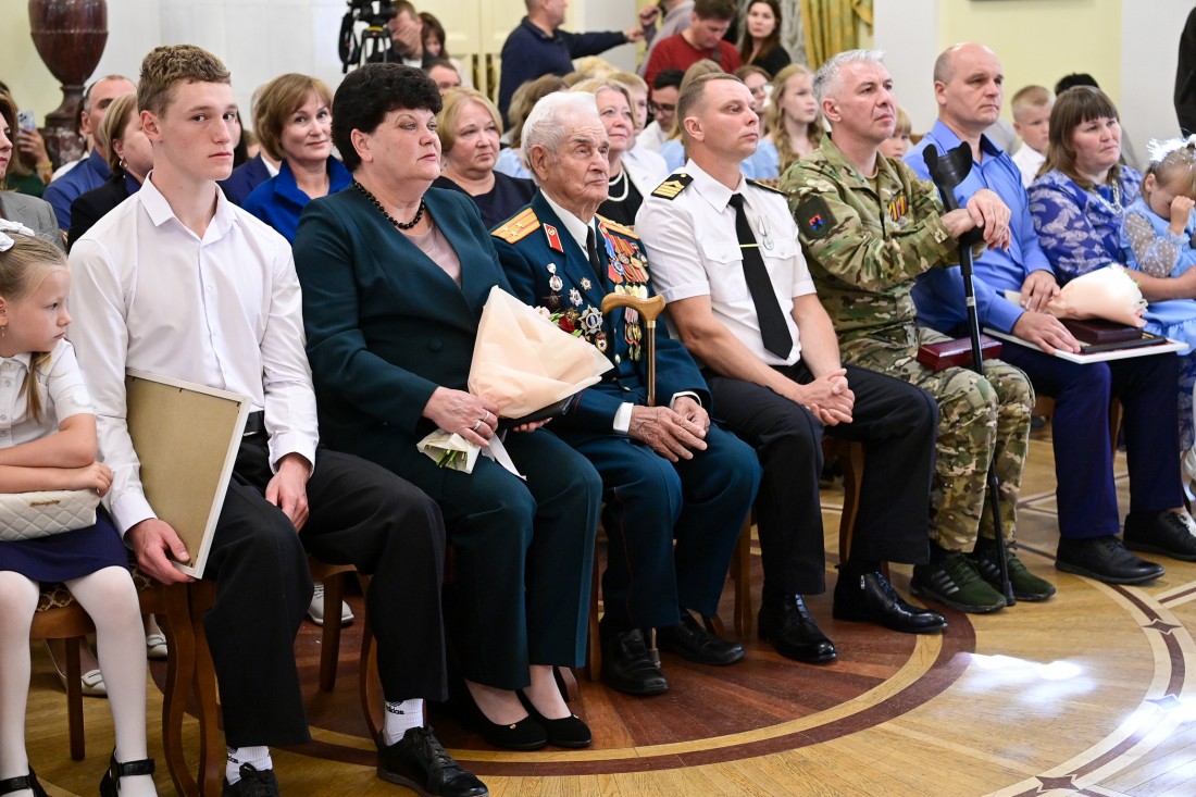 – Среди нас сегодня не только ветераны, отстоявшие Родину в годы войны, но и новые герои. С честью и достоинством они продолжают дело отцов и дедов, защищая интересы страны, – сказал руководитель региона. – Те, кого сегодня получает высокие государственные награды, с честью выполняют воинский долг на полях сражений, рискуя жизнью.