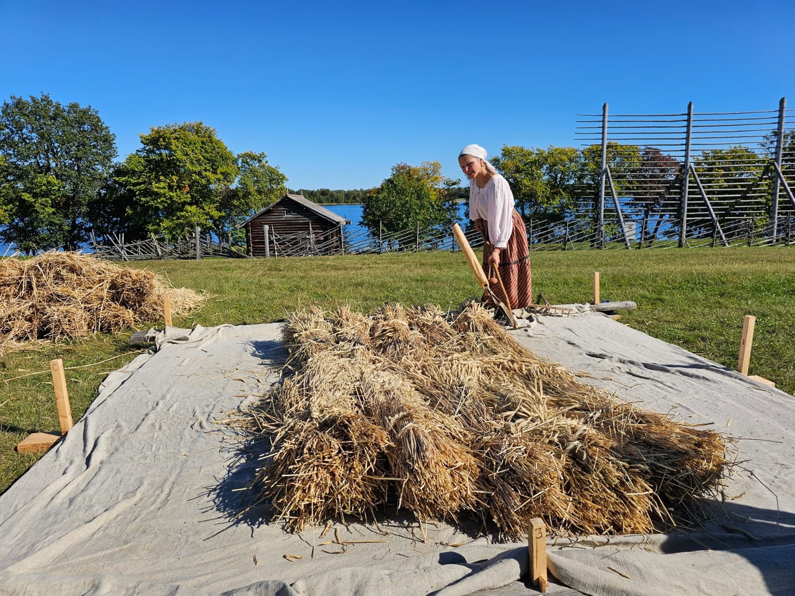 Музей-заповедник «Кижи» сообщает о начале сезона молотьбы на острове. Напротив Кижского погоста организован ток, где уже обмолочены первые снопы ржи.