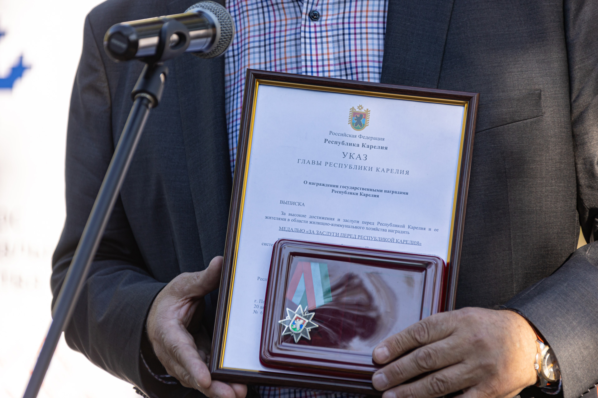 Указом Главы Республики Карелия АО «ПКС-Водоканал» наградили медалью. Высокую награду вручил Премьер-министр Правительства Республики Карелия Андрей Сергеев.