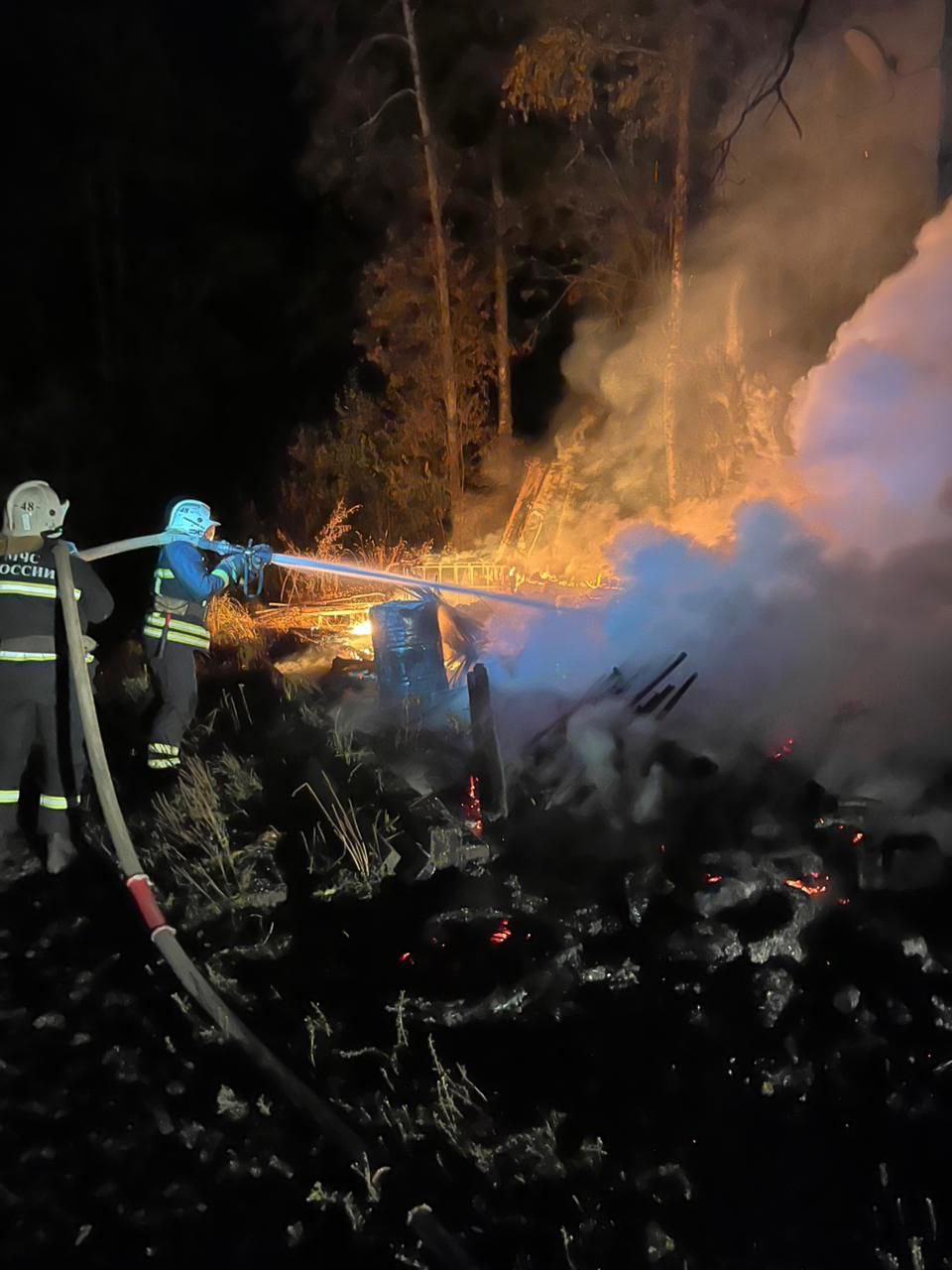 Пожарные поселков Пряжа и Матросы выехали на место возгорания. Там вовсю горело строение площадью 50 кв. м.