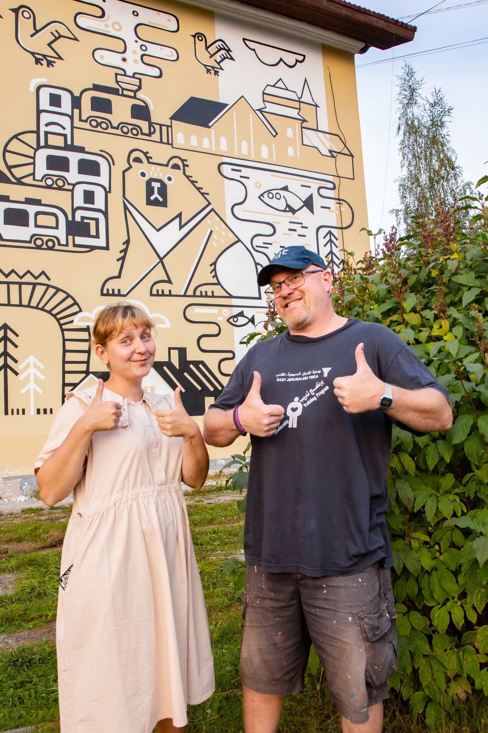 «Благодарим кураторов проекта Ксению Петрову, Карьяла Ивен, а также авторов — группу КАРТель: художники Вероника Вологжанникова и Дмитрий Новицкий, за реализованную идею и обновление архитектурного облика города», — поблагодарила глава Медвежьегорского района Людмила Журавлева.