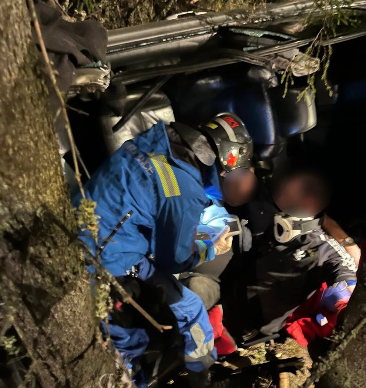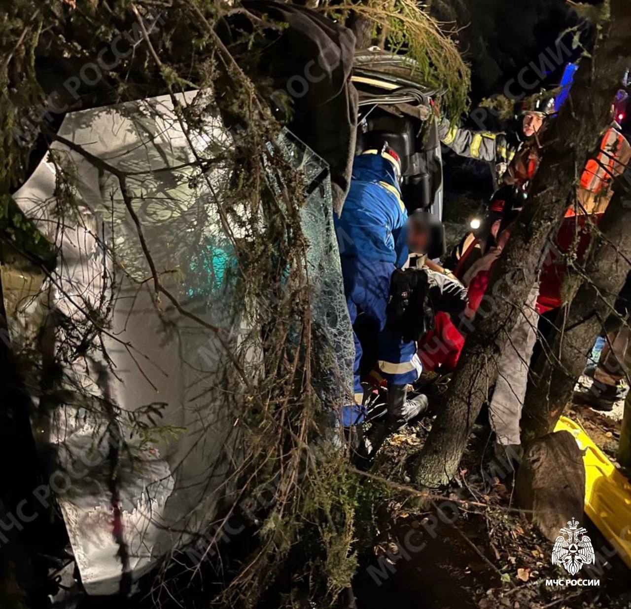 Сотрудники МЧС отключили аккумулятор в машине, деблокировали двух пострадавших и оказали им медицинскую помощь.