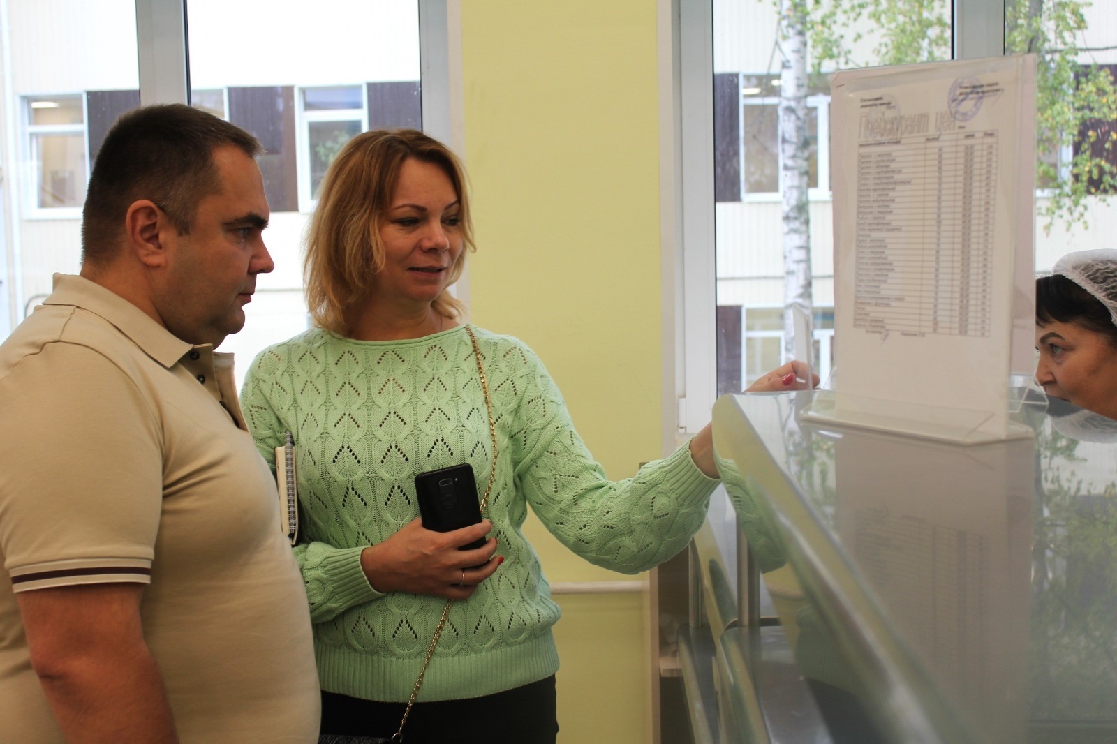 Вместе с начальником управления образования городской администрации Светланой Пахомовой они посетили столовую и пищеблок, изучили меню и график питания учеников, оценили, как соблюдаются санитарные нормы в школьной столовой.