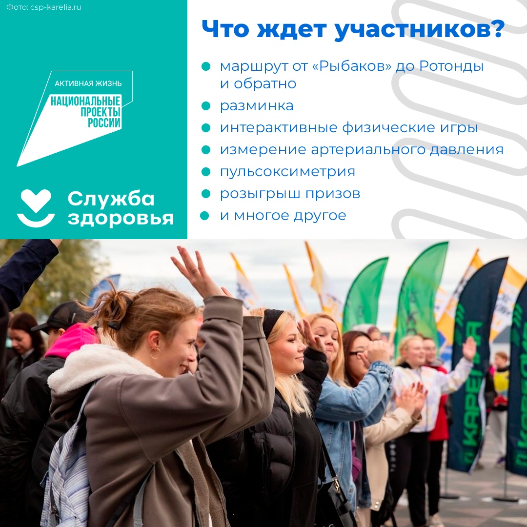 Паблик «Спорт — норма жизни Карелия» анонсировал профилактическую акцию «10 000 шагов с врачом». Мероприятие пройдет 20 сентября на Онежской набережной в Петрозаводске.
