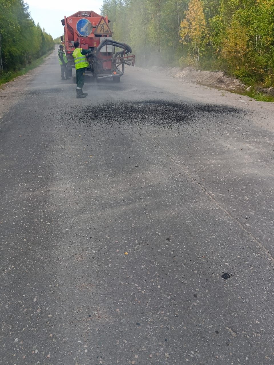 В настоящее время ремонтные работы перенесены на автомобильную дорогу «Тикша-Реболы», где продолжается восстановление асфальтового покрытия.