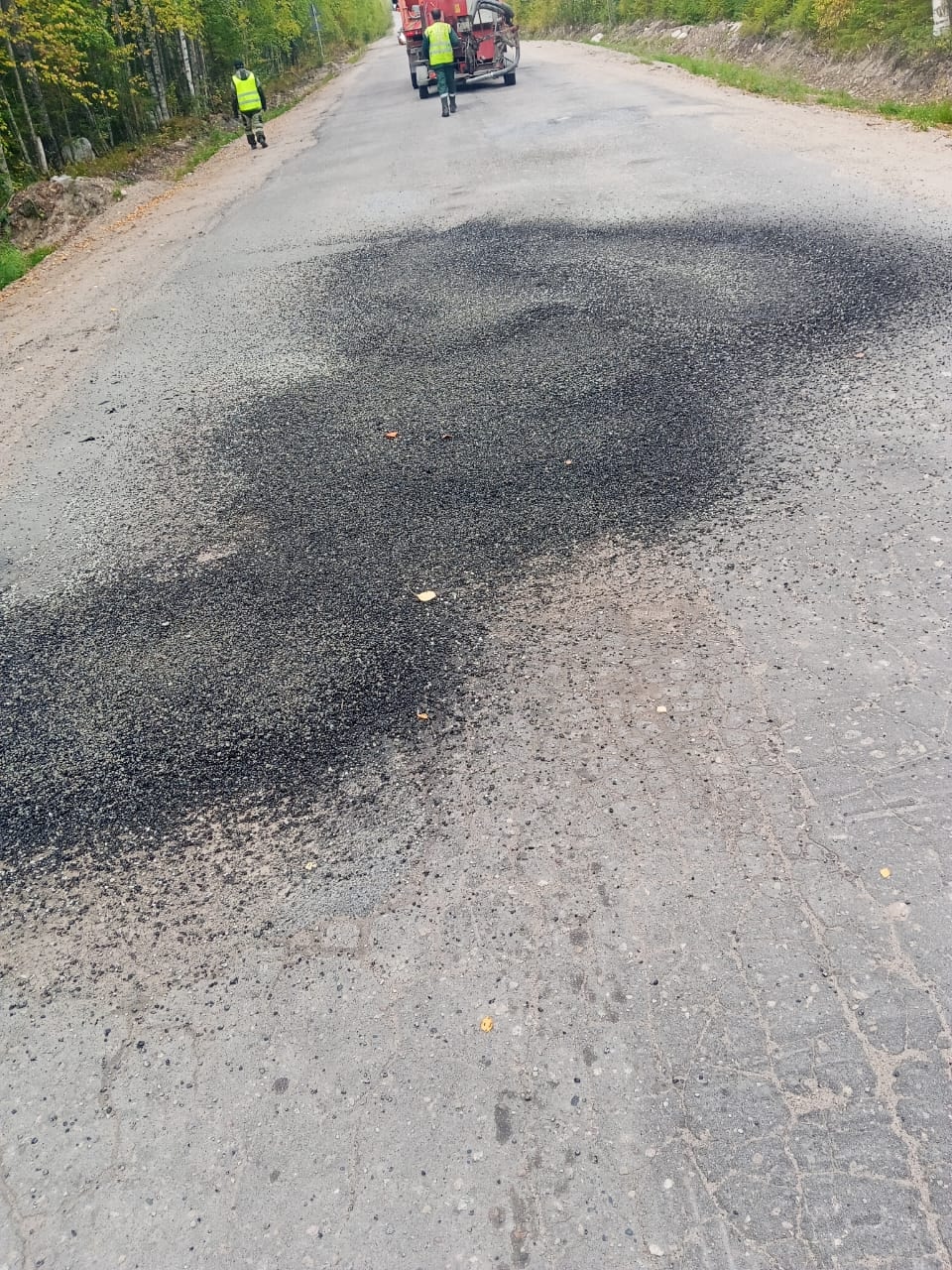 Администрация Муезерского района сообщает о проведении работ по содержанию автомобильных дорог. Подрядная организация ООО «Петрокат Плюс» выполнила ямочный ремонт на дороге «Подъезд к пгт. Муезерский».